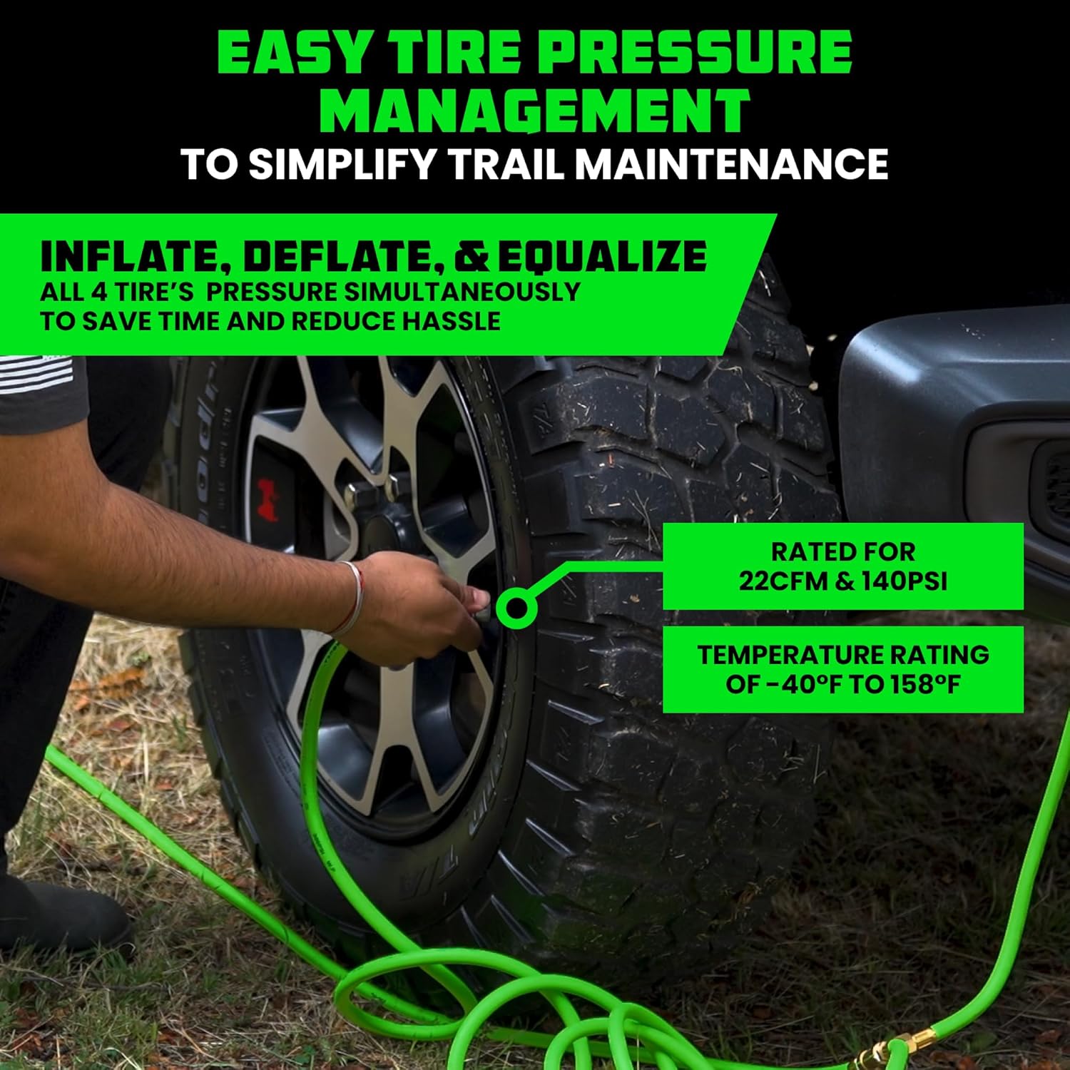 - AIR UP OR DOWN IN MINUTES - Quickly Inflate all Four Tires at Once in Just Minutes With This High-Flow Tire Inflation System. Its Efficient Design Saves you Time and Effort, Ensuring Your Tires Reach the Optimal Pressure.