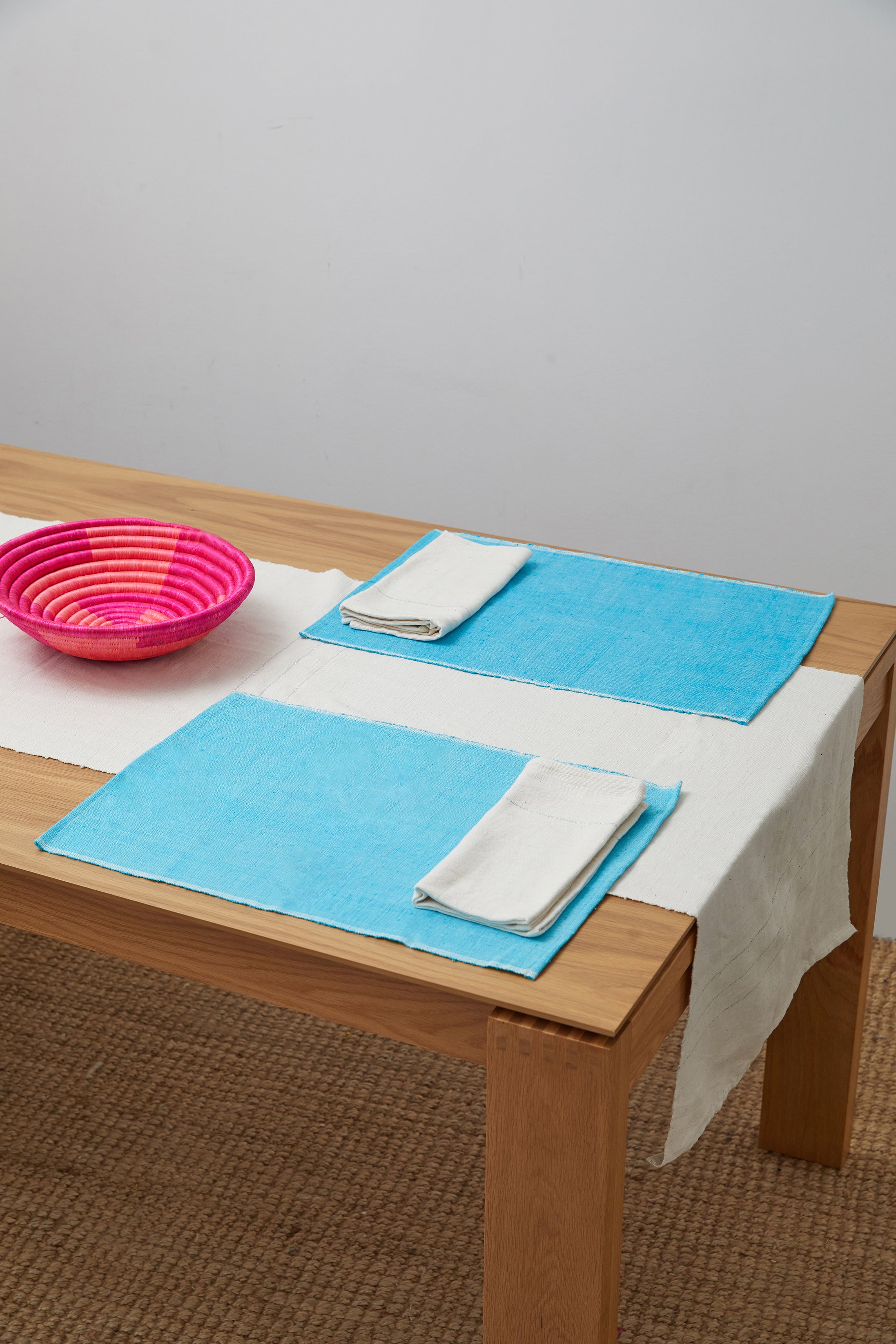 Complete your dining table look with this handwoven table runner made with soft, durable cotton. Its simple and elegant design is perfect for any dining space.