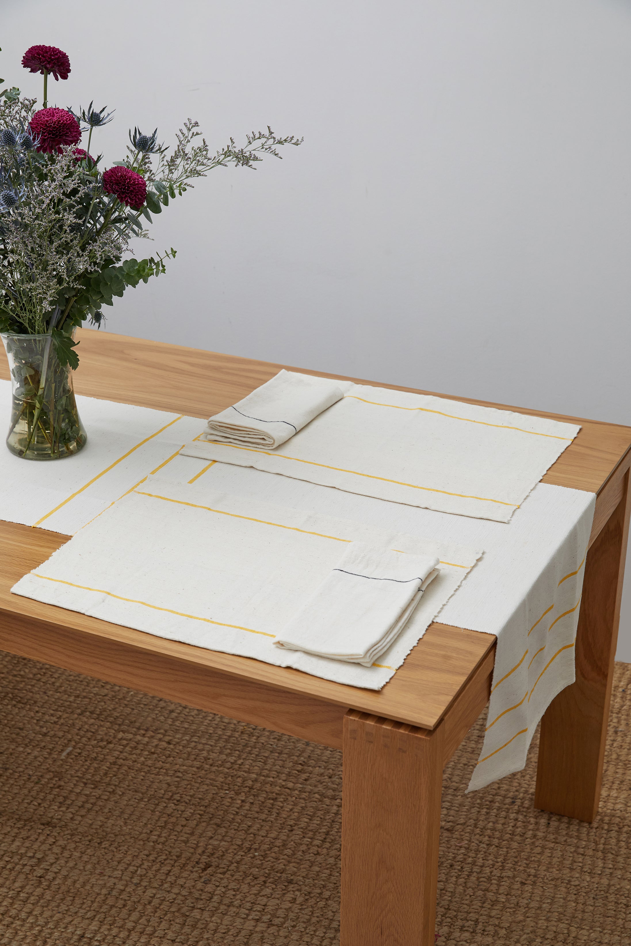 All of our beautiful napkins and placemats are woven with Ethiopian cotton which is soft yet durable. Made from a slightly thicker yarn than its coordinating napkin, this placemat has added stability and texture. The modern stripe is a versatile design perfect for any dining space.